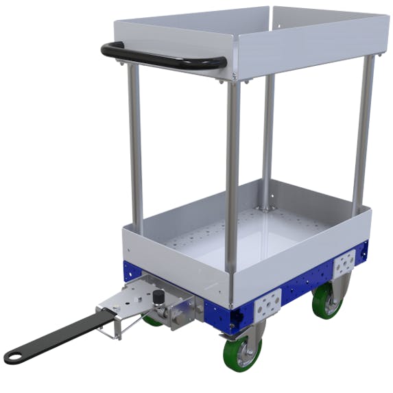 Routenzugwagen in halber EUR-Palettengröße zum Transport von kleineren Kisten und Behältern.