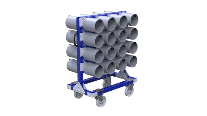 Wagen mit horizontalen Rohren zum Aufhängen von Komponenten.