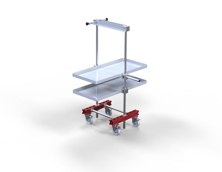 Einzigartiger Kit-Wagen mit kleinen Regalen zum Transport von kleinen Materialien.