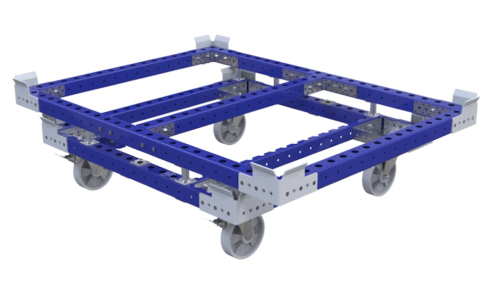 Palettenwagen für den B-Rahmen von STILL LiftRunner. Der Wagen ist außerdem mit vier Nylon-Lenkrollen ausgestattet, zwei davon mit Bremse, was das manuelle Manövrieren erleichtert.