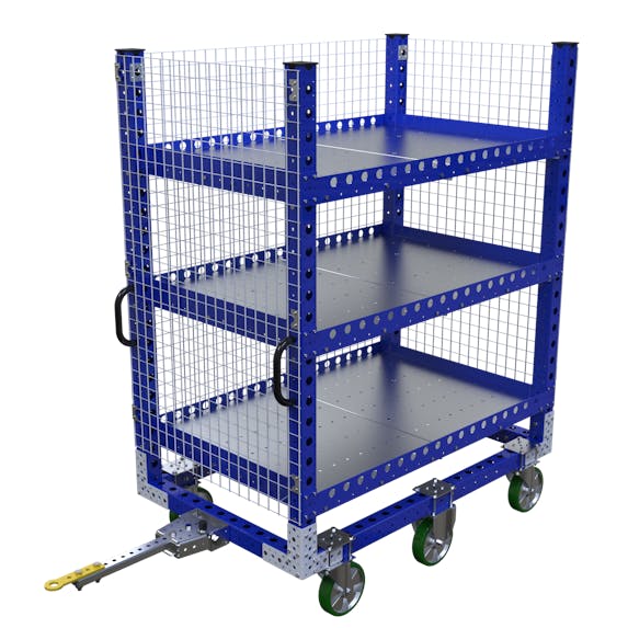 Regal-Zugwagen für den sicheren Transport loser Komponenten innerhalb einer Einrichtung.