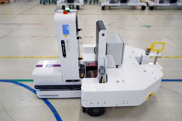 Das Navigator Towing AMR-System besteht aus dem Navigator-AMR von FlexQube und dem dazugehörigen Schlepp-Lastträger. Dieses Schwerlastsystem ist darauf ausgelegt, Wagen mit Deichsel in Produktions- und Lagerumgebungen autonom zu bewegen. Das System kann Materialien mit einem Gewicht von bis zu 2500 kg (5500 lbs) transportieren. Dank des patentierten modularen Konzepts von FlexQube können verschiedene Lastträger je nach Bedarf ausgetauscht werden.