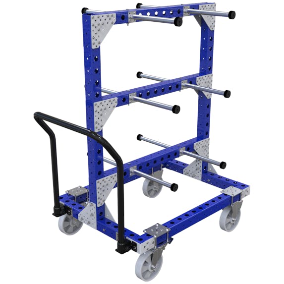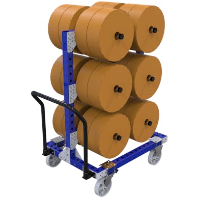 Dieser Wagen wurde zum Aufbewahren und Transportieren von Rollen, Spiralschläuchen oder ähnlichen Produkten, die an den Rohrhängern hängen, entwickelt.