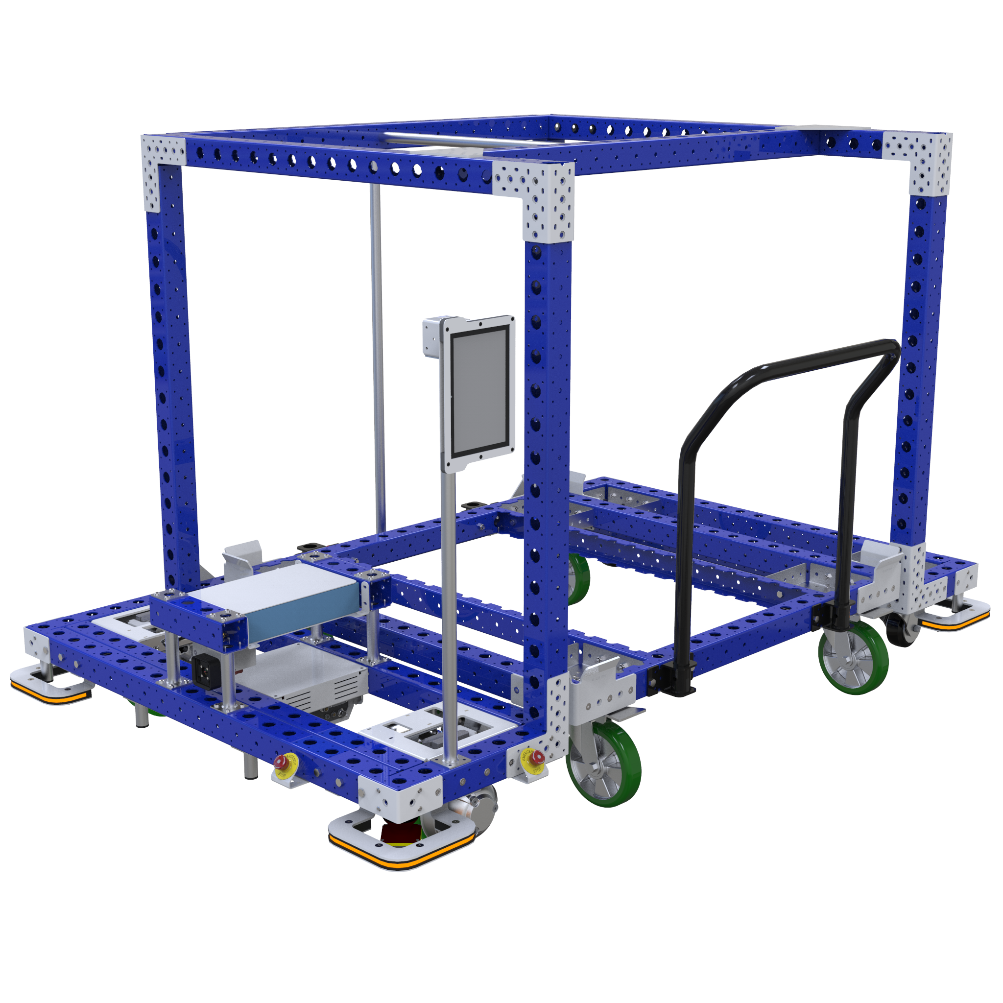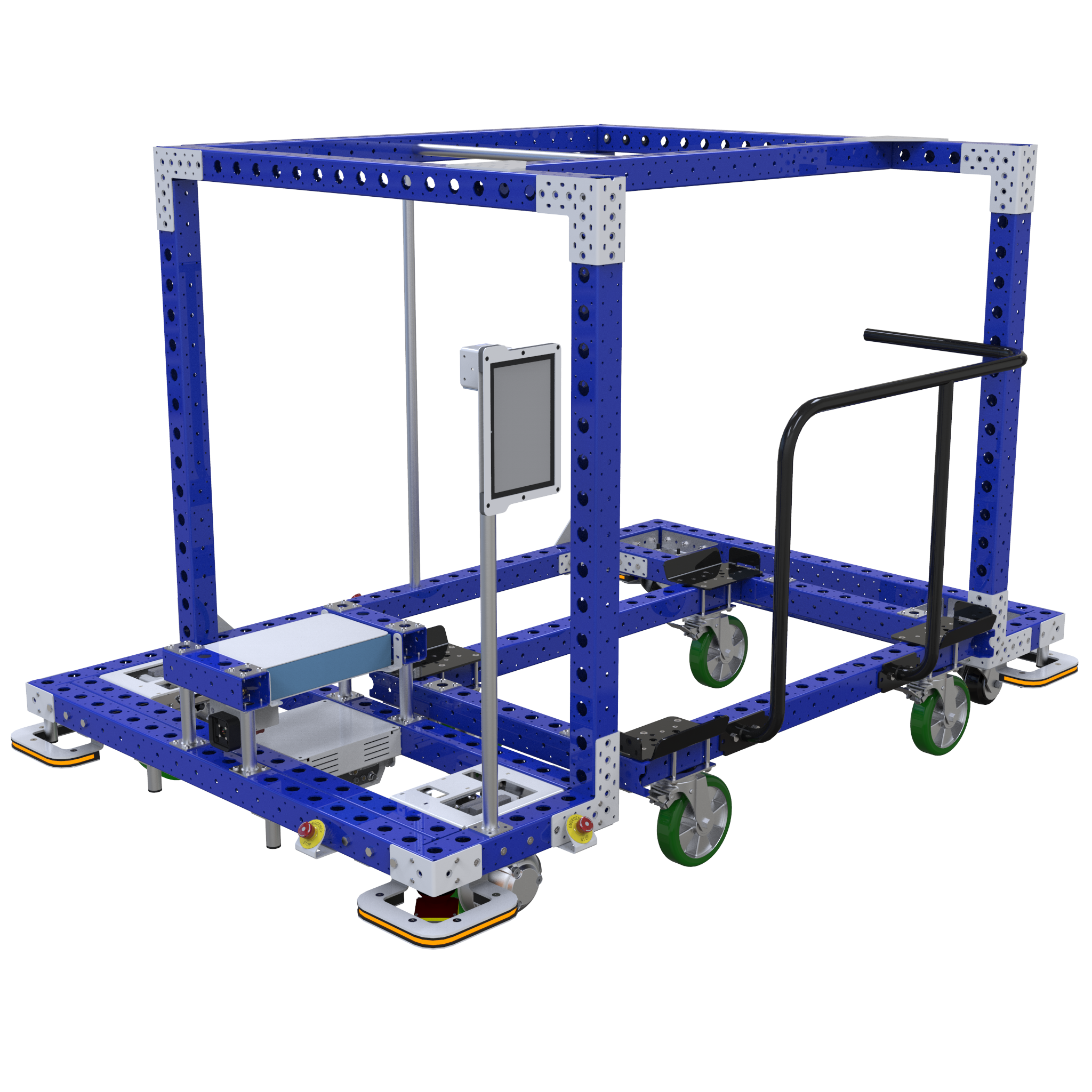 Motorized mother-daughter solution. The Mother cart is a smart and motorized cart that can transport one regular daughter cart.